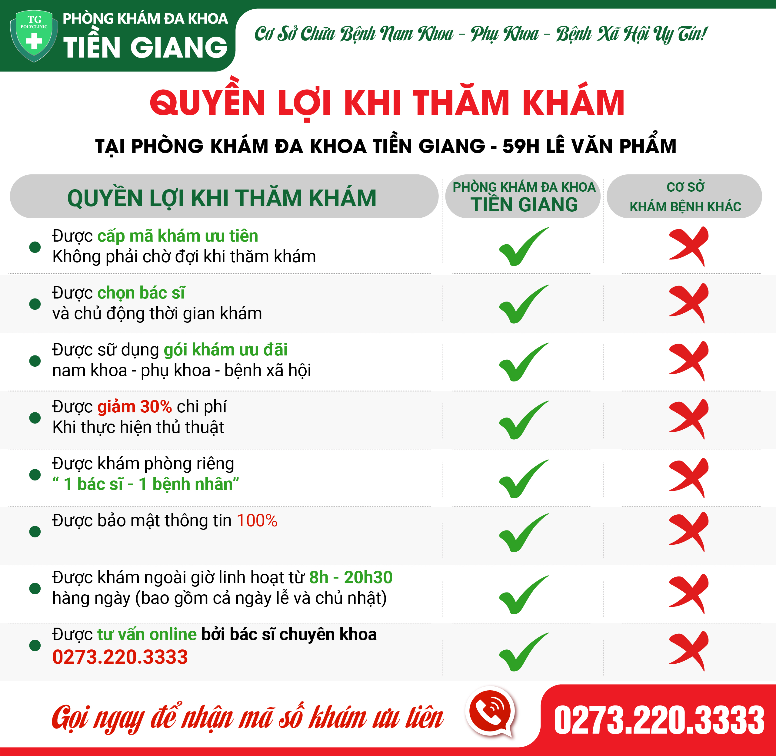 Rất nhiều bệnh nhân cho rằng đi Sài Gòn điều trị bệnh thì có thể đạt được hiệu quả cao. Nhưng lại không biết hiện tại ở khu vực miền tây - thành phố Mỹ Tho cũng có cơ sở chuyên khoa y tế điều trị hiệu quả các bệnh lý không kém gì Sài Gòn. Đối với mỗi bệnh nhân thì việc chọn 1 cơ sở chuyên khoa uy tín, hiệu quả cao mà vẫn đảm bảo chi phí hợp lý và tiết kiệm thời gian là vô cùng quan trọng.
